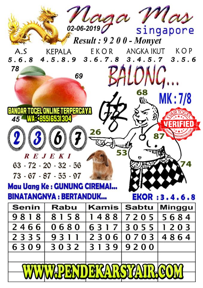 Syair Togel Singapore Hari Ini 02 Juni 2019
